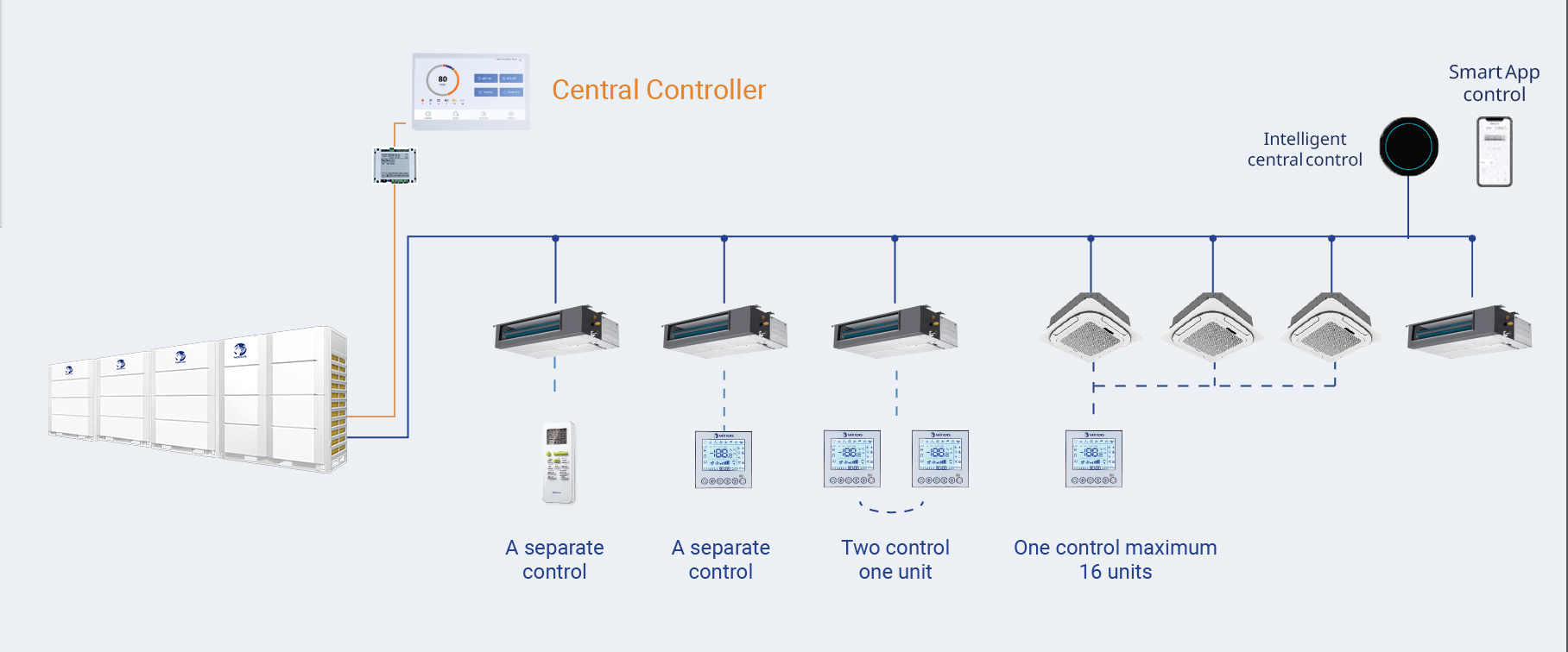• Collegabili fino a 16 sistemi e 1280 unità interne; facile impostare i parametri delle unità interne