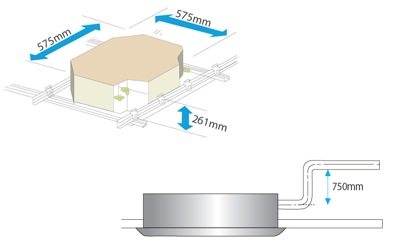 Il design compatto e l’installazione facile rendono l’unità adatta a qualsiasi ambiente — la struttura a basso profilo consente un’installazione pratica anche in spazi ridotti. Il pacchetto include una pompa di scarico condensa con una prevalenza di 750 mm per i modelli standard e di 500 mm per i modelli compatti. La vaschetta condensa estesa offre una protezione aggiuntiva per il soffitto, mentre la possibilità di immettere aria fresca attraverso l’unità contribuisce a creare un ambiente interno più pulito e confortevole.