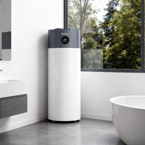 La Pompa di Calore per Acqua Calda Sanitaria fornisce acqua calda per l’uso domestico quotidiano in modo efficiente e affidabile. Questo sistema può riscaldare l’acqua fino a 65 °C, o fino a 75 °C utilizzando il riscaldatore elettrico integrato. È dotato di un serbatoio in acciaio inox robusto, isolamento termico avanzato e un pannello di controllo intelligente con Wi-Fi e schermo LCD touch. Grazie alla tecnologia a risparmio energetico, al funzionamento silenzioso e alle funzioni di sicurezza integrate – come la protezione antigelo e il sistema anti-legionella – offre comfort costante e lunga durata nel tempo.
