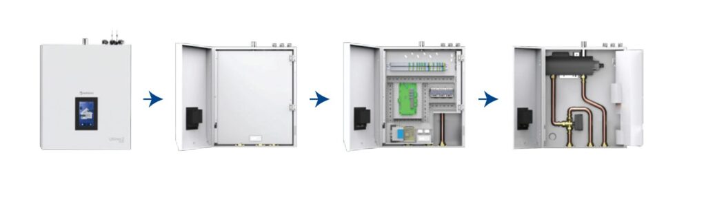 Aprendo il pannello frontale con cerniere e lo sportello dell’automazione di controllo, il sistema idraulico risulta facilmente accessibile. Questo garantisce un comodo accesso a tutti i componenti del sistema idraulico e di controllo.